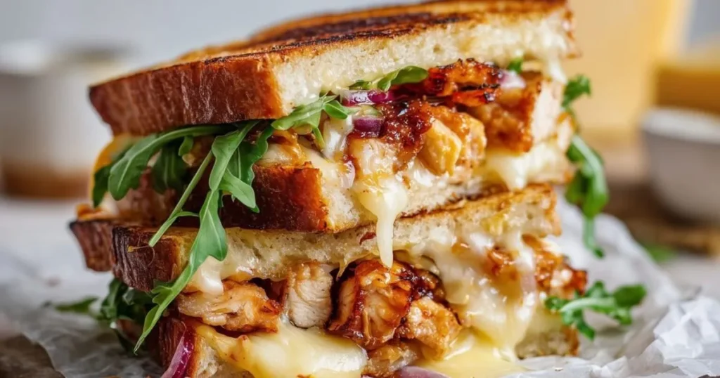 Have you ever wondered why restaurant versions of comfort food classics taste exponentially better than homemade attempts, even when using identical ingredients? The secret lies in understanding the chemistry of heat distribution, cheese selection, and flavor layering that transforms simple components into extraordinary experiences. The BBQ Chicken Grilled Cheese represents the perfect fusion of two beloved American comfort foods—tangy barbecue chicken and gooey grilled cheese—creating a sandwich that delivers complex flavors with surprisingly simple execution. This elevated BBQ Chicken Grilled Cheese recipe teaches you professional techniques for achieving perfectly golden, crispy bread with an interior filled with stretchy melted cheese, tender barbecue-coated chicken, and complementary toppings that balance sweet, savory, and tangy notes in every bite. Whether you’re looking for an exciting weeknight dinner solution, planning a casual gathering with friends, or simply craving something that satisfies on multiple levels, this recipe provides the blueprint for creating restaurant-quality sandwiches in your own kitchen with confidence.