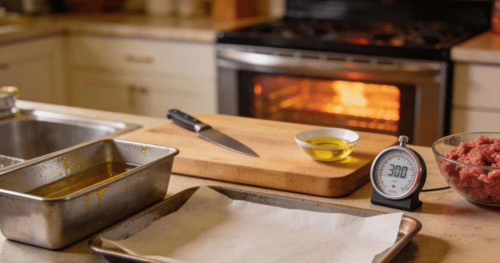 Line your baking sheet with parchment paper for easy cleanup and perfect browning. The parchment prevents sticking without adding extra grease.