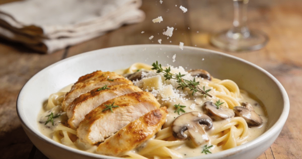 Replace the Italian seasoning with fresh thyme leaves. The earthy mushroom flavor pairs beautifully with the creamy sauce.